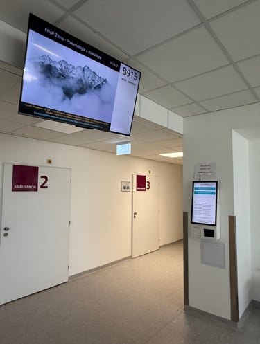 Vyvolávacia obrazovka tiež dopĺňa pokojnú atmosféru čakárne.